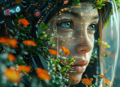 Woman's face wearing a futuristic